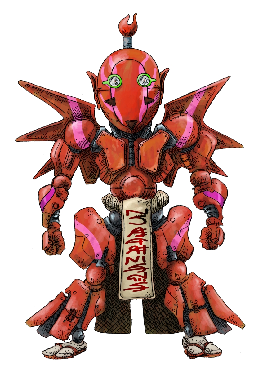 宇宙キッド対ドテドン Odaikhan 投稿者: murbo 投稿日: 2018/11/112018/11/11 オダイカーンはバイトメンの敵組織の幹部。代官と名前がついているが織田と代官の合成だ。織田信長のつもりだったのにうっかり代官と名付けてしまったので頭に「お」をつけてごまかしている。まわしの謎の記号は今考えている謎の国の文字。まだ完成形ではないので途中経過をそのまま使っている。 シャープペン0.9mmのドローイングにprocreate(iOSアプリ)で着色。 関連記事: echigorn Heyzo GIGA BYTE ROBO
