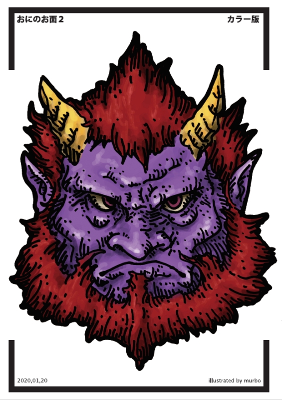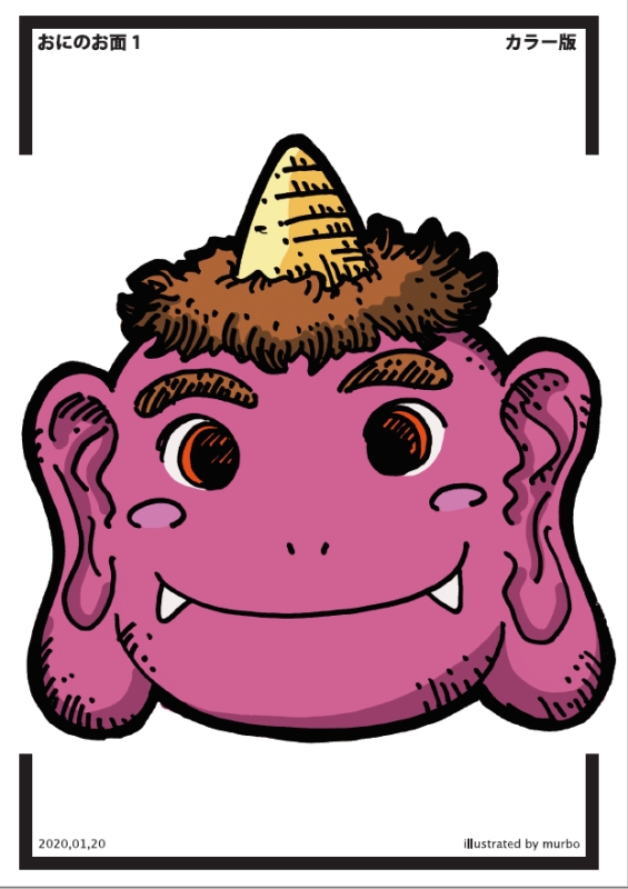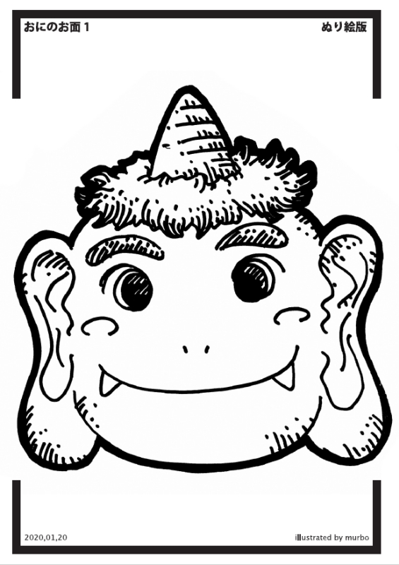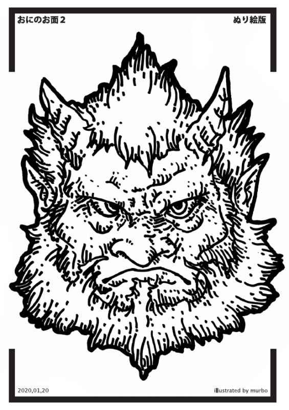 Picture 鬼のお面 投稿者: murbo 投稿日: 2020/01/302022/06/05 節分も近いので鬼の顔面を描きました。各絵をクリックするとA4サイズのPDFがDLできます。A4でなくても適当に拡大してお面にしてみてください。塗り絵になるように線画のあります。角が二本ある方は牙を忘れたな。 関連記事: 鬼龍10121701 鬼龍19121702 flower dragon 191226b