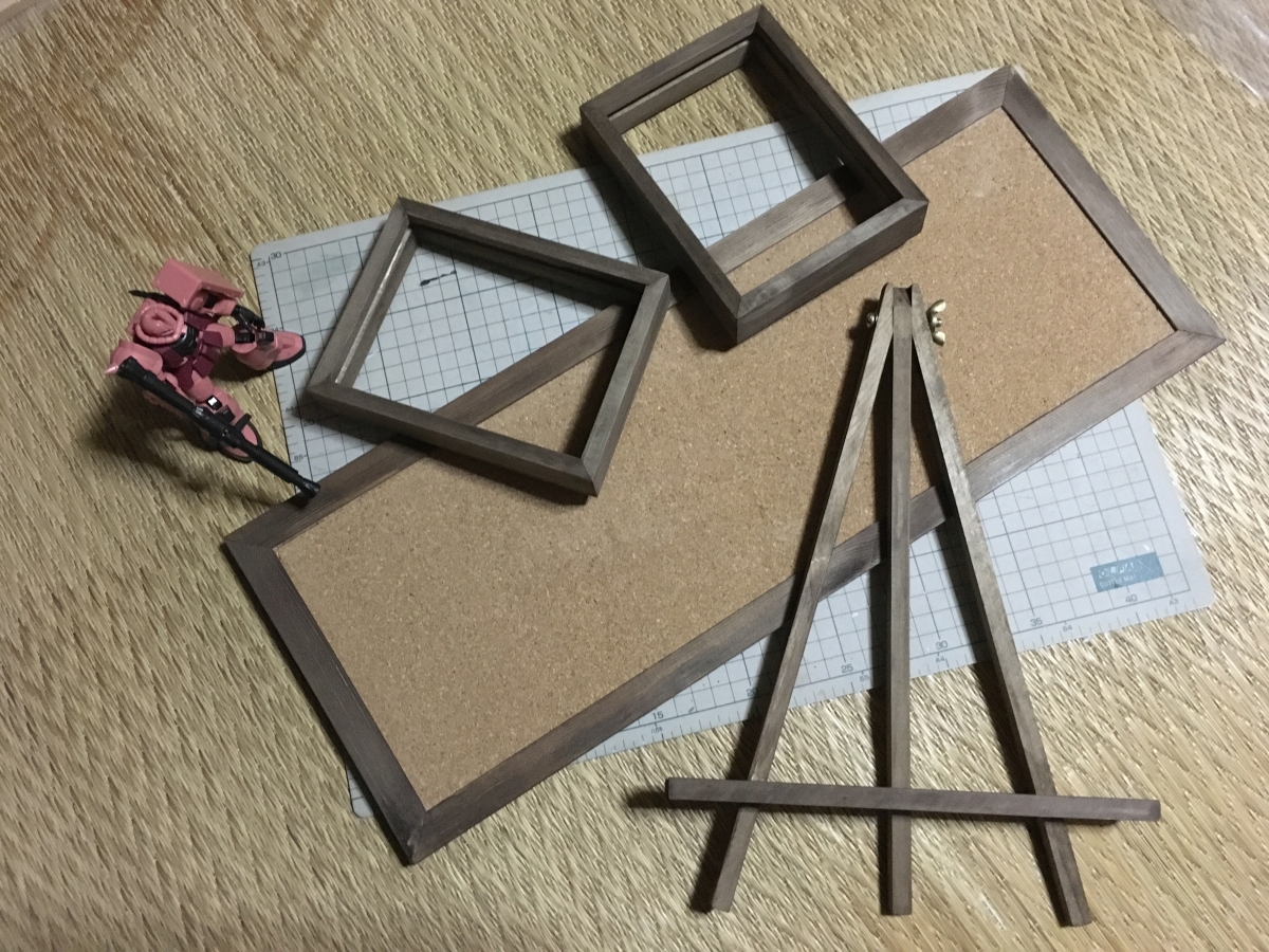 1/20はライブペインティングの他に絵も展示します。以前グループ展に出したものなので四点程度ですが。その他に小さい絵も展示しようと思いまして、その為の枠をセリアで購入後、エッジを面取りしてオイルステンなのに水性を塗りました。