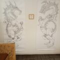 展覧会2025年8月2日のライブドローイングのまとめ。計三枚描きました。