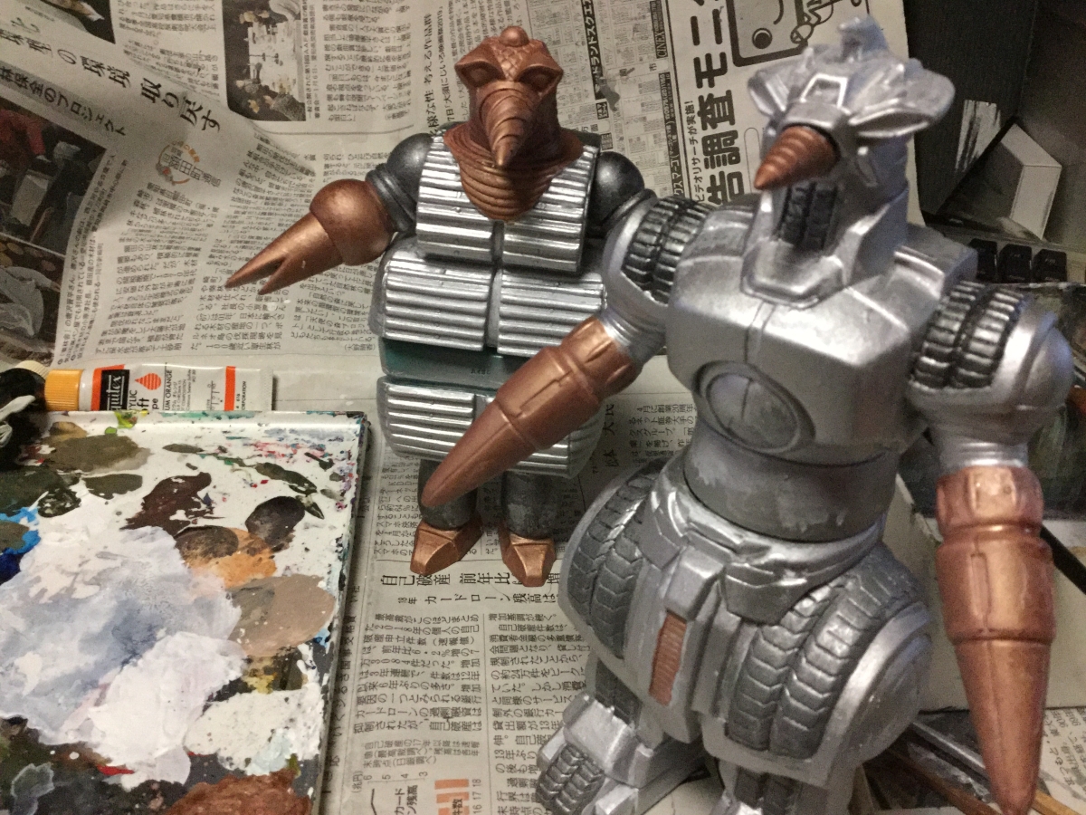 Moguera。なんとなく塗っていたら全部メタリックだった。くすんだ青色が鈍臭さに拍車をかけていると思ったのでガンメタリックに変更している。Gフォースの建造したモゲラはオリジナルのカラーリングは無視して勝手に塗っている。どちらかと言うとミステリアンの作ったモゲラに似せている。Gフォースの建造したモゲラには金色が足りない。