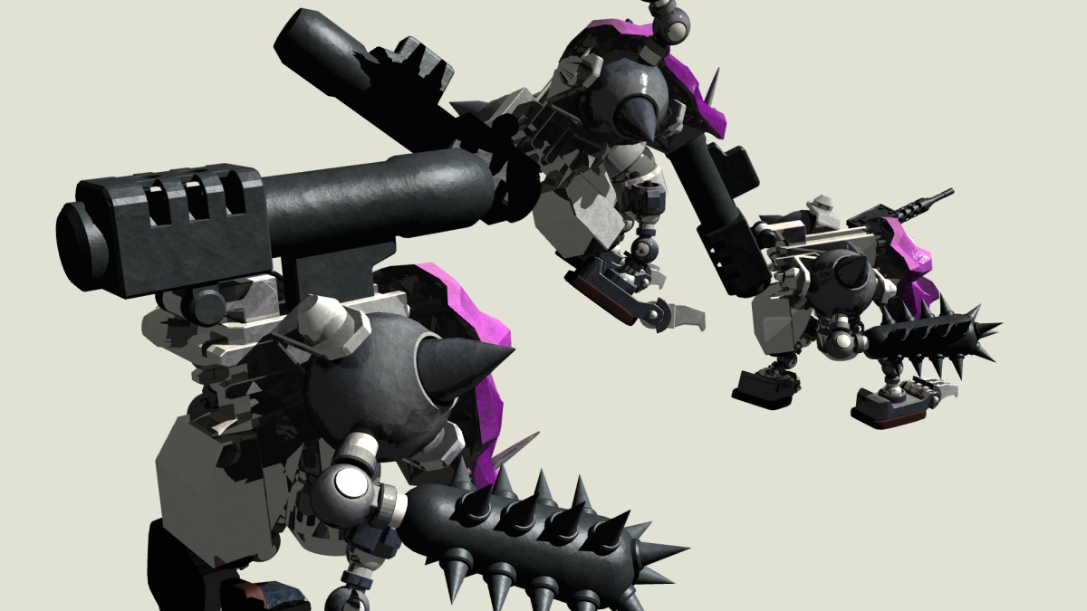 自作キャラクター・自主制作・対決シリーズ 黒と紫の鬼ロボ小隊。 投稿者: murbo 投稿日: 2016/02/032022/06/05 鬼ロボットのバリエーション。肩のとげと色を変えてバズーカを頭につけただけ。なんというか簡単だけど面倒。三分じゃ出来ない。 たまたまバリエーションを作りやすかったので増やしてみたけど、鬼ロボットにそんなに思い入れは無い。もうこの辺でいいだろう。あと何かあるかな、砂漠用、狙撃用、偵察、水中泥地用か。 関連記事: 俺対鬼ロボ。 赤鬼ロボと緑鬼ロボ 俺対ドローンロボ