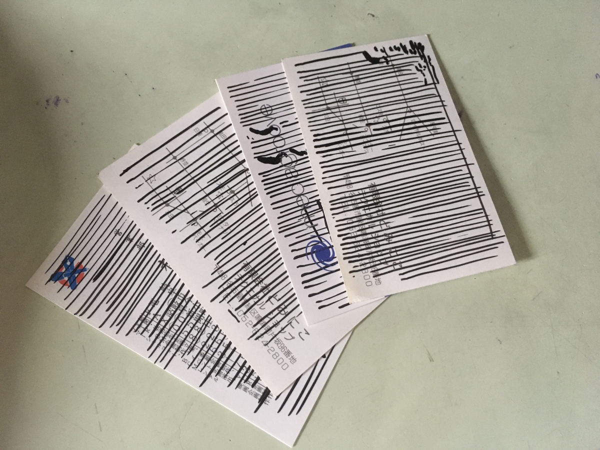 日記 筆を整えつつ練習。 投稿者: murbo 投稿日: 2023/09/122023/09/12 もう三十年以上前の名刺なら意味は失っているだろうと処分しようと思ったが、そのまま捨てるのも何なので筆の整えに使っている。かなり削れてきてほぼ寿命なんだがもう少し使いたいのでここで整えつつ練習している。とにかくまっすぐ細い線で描ければよいのですが。 関連記事: 筆の持つこところを改造 大きめの筆の練習。 筆を探しています。