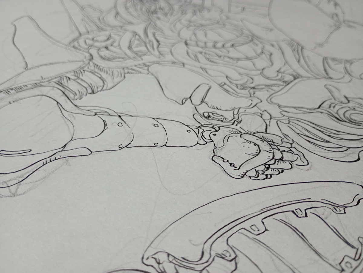Picture 拾貳ノ戦機の制作250302。 投稿者: murbo 投稿日: 2025/03/022025/03/02 昨日の下書きを確認したらやたら小さかったりバランスの悪いものと同じポーズの絵を修正する。 で、同じポーズを描き直すのをすっかり忘れて筆で描いていました。ポーズは考えたんですけど。 Readers who viewed this page, also viewed:拾貳ノ戦機20250226。 関連記事: 拾貳ノ戦機250221c。 拾貳ノ戦機250222下書き。 拾貳ノ戦機20250226。
