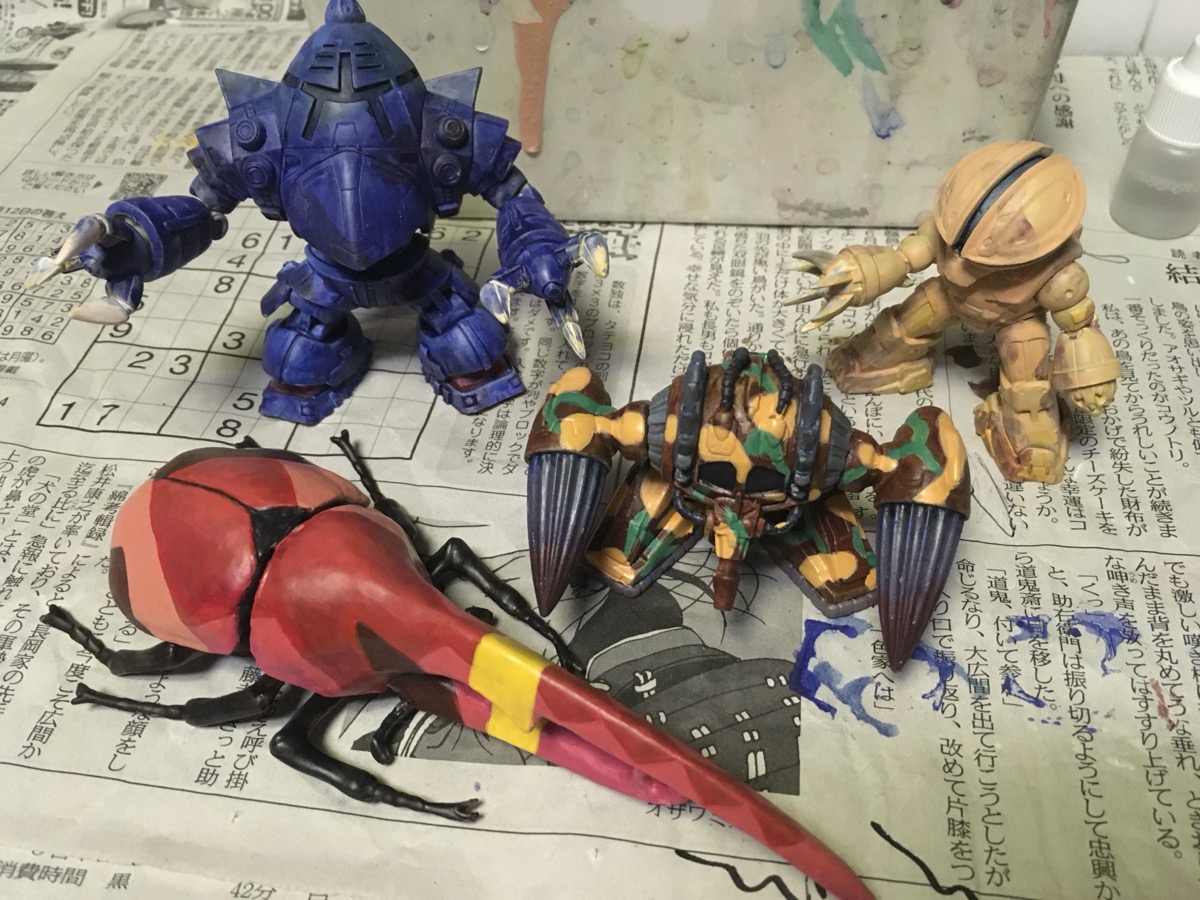 一つでも完成させたいので、ヘラクレスオオカブトムシを完成とした。ベースは作ってないけどね。アッグもそろそろ完成かな。まだ色の落ち着きがないので手を入れたい。アッガイとゾックはまだまだ先は長いです。