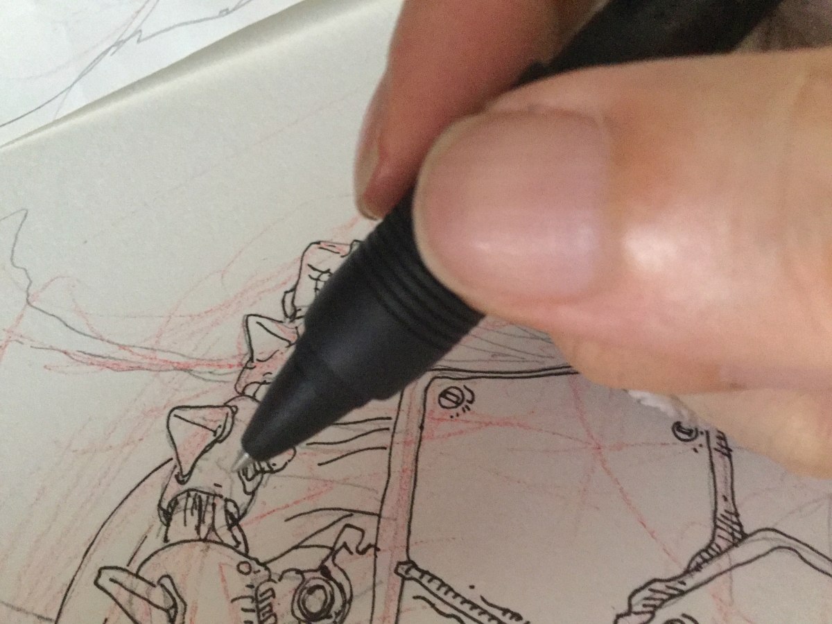 顔料インクがいいなと思ったくらいで描いた感じはほとんど変わらない。ボディはユニボール ワン。リフィルはどれがいいかと入れ替え続けた結果でsignoになっているがユニボール ワンのリフィルでも全く問題ない。たぶん、気分の問題になっていると思う。そのくらい各リフィルというか、ボールペンは性能が高い。