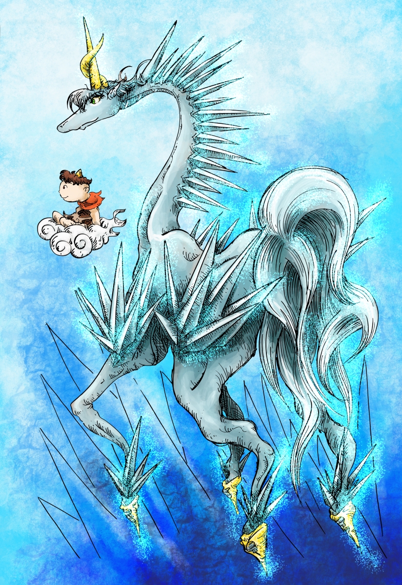 展覧会の会場でライブドローイングしたイラストにデジタル彩色したもの。