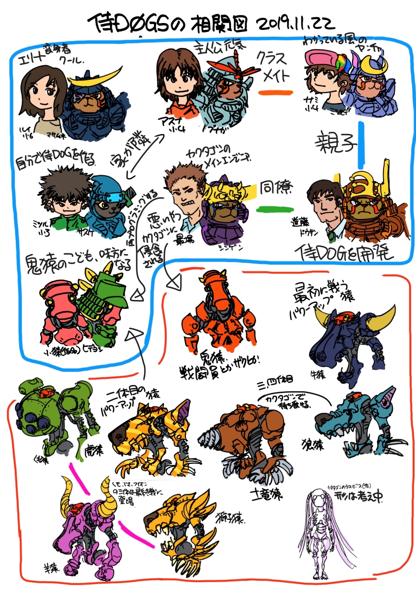 自分でも誰が誰だかわかなくなってきたので描いた。描いているうちに人が増えてたり役割が変わったりしている。