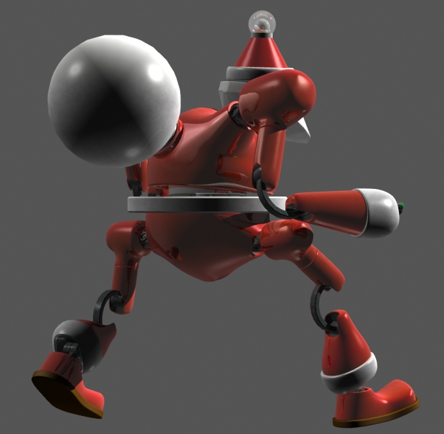 両手のマシンガンで脅したり建物を壊したりして股間のバキュームマシンで金目のものを吸い取っていくのだ。吸い取ったものは背中の白い球体に格納される。長距離移動用のトナカイロボも作ってみたいが、こればっかりに時間使いたくないんだよね。あくまでも息抜きなのです。