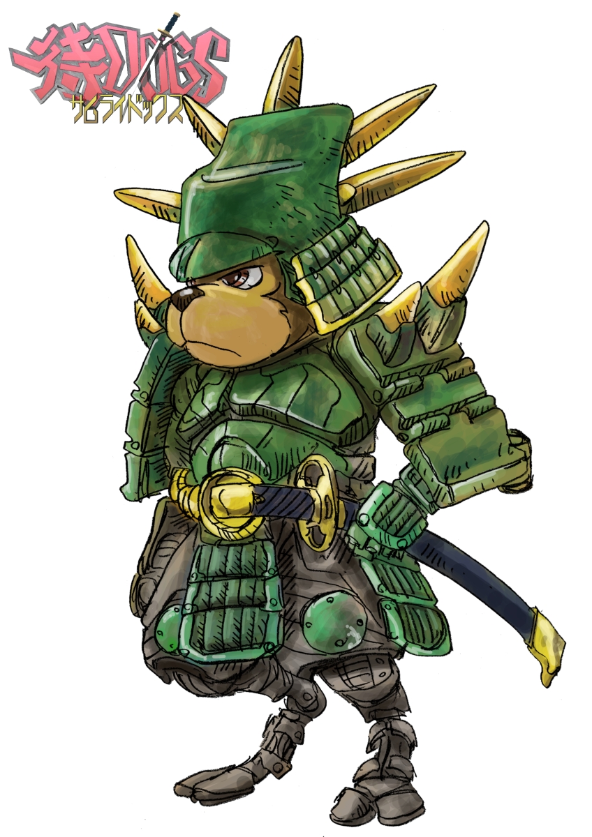 hideyoshi。nobunagaよりも小型の侍ドッグ。ベルトのバックル状の部分を金色のままにしていた。ここは他では青色に塗りつぶしていて、それぞれの家紋が入る予定。