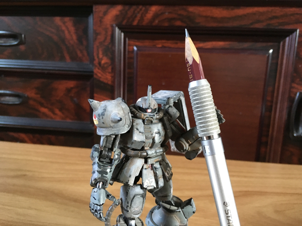 鉛筆は長さが変わるのが嫌なので最初から二つに切って鉛筆ホルダーに入れて描いている。
