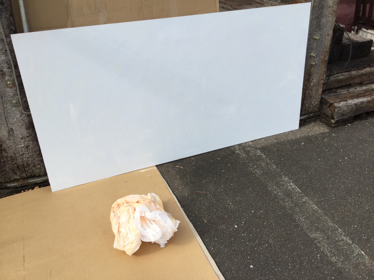 板の前に丸まっているのはこの板、アルミの板です。の保護フィルムです。