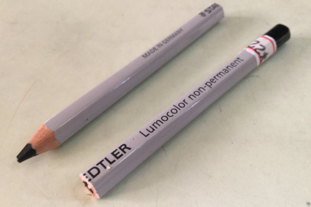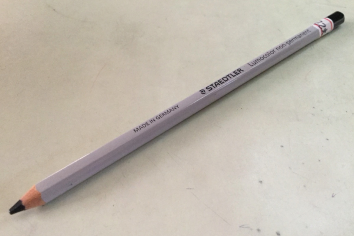 つるつるの板などにもはっきり描ける。筆圧が低いと若干かすれるものの、下書きには十分だし、水できちんと消えるのも良い。