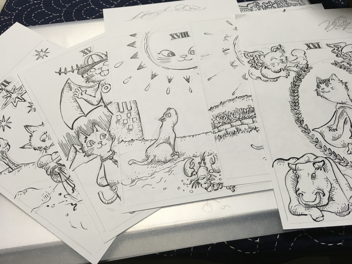 描けたので完成でよかったがやっぱり色がついていないと威張れない気がしたので昔のマルセイユ版の印刷程度の色でまとめることにした。