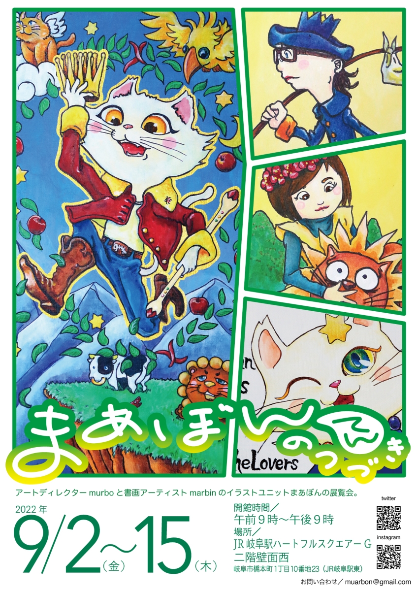 また展覧会やります。”まあぼん、のつづき(まあぼんてんのつづきと読みます。)”です。今度は猫をモチーフにしたタロットのイラストです。