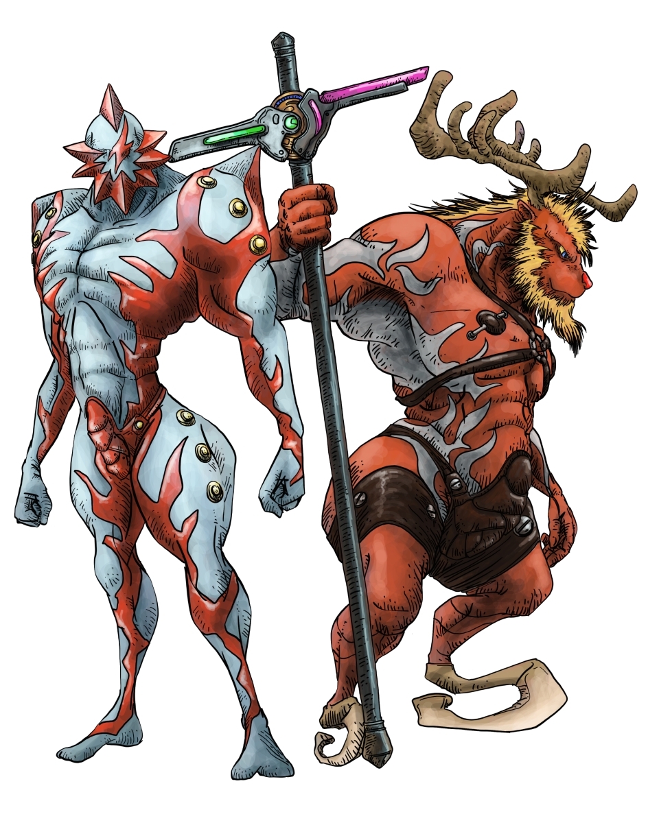 今回気にしたのはクリスマスでもサンタでもなく、ちんこだ。ほとんどの巨大ヒーローや怪人、怪獣は全裸だ。なのにまるで服を着ているようなデザインであったり、 そうでないなら生殖器についてなにも提案がない。子供向けであることと、なにより公共電波をりようして公開するので致し方ないであろうが、それでもなんらかの屁理屈がそこにあってもいいのじゃないか。ということで、パンツを履いていることになっているが、布では固定されないので、固定していそうなデザインにした。一応、生殖器はある前提だ。