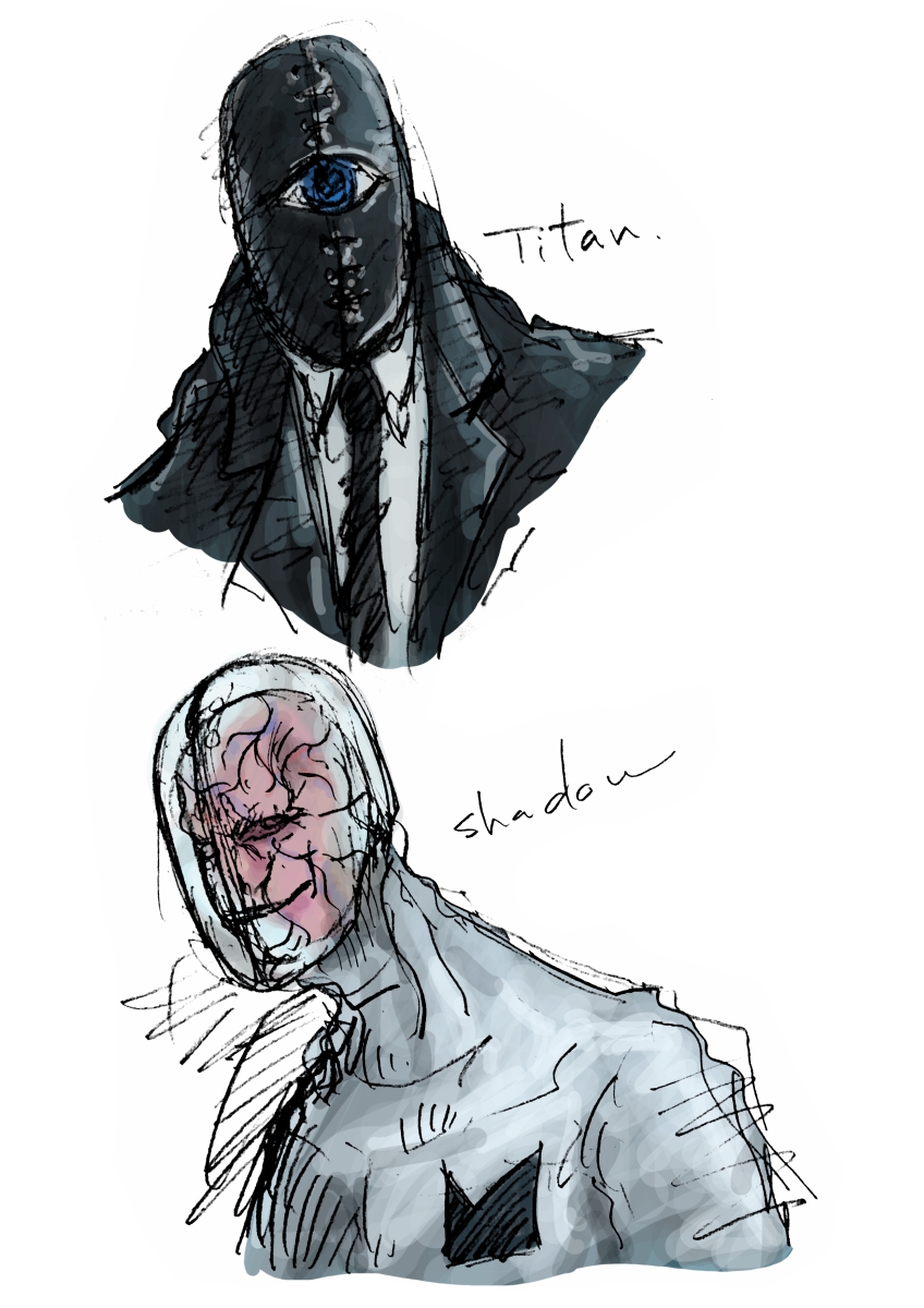 前半は黒い革の全頭マスクをかぶっていて、後半の戦闘が多くなってからは強化プラスチックのカバーを付けている。対外的にはタイタンと呼ばれていたが実名はシャドウ。