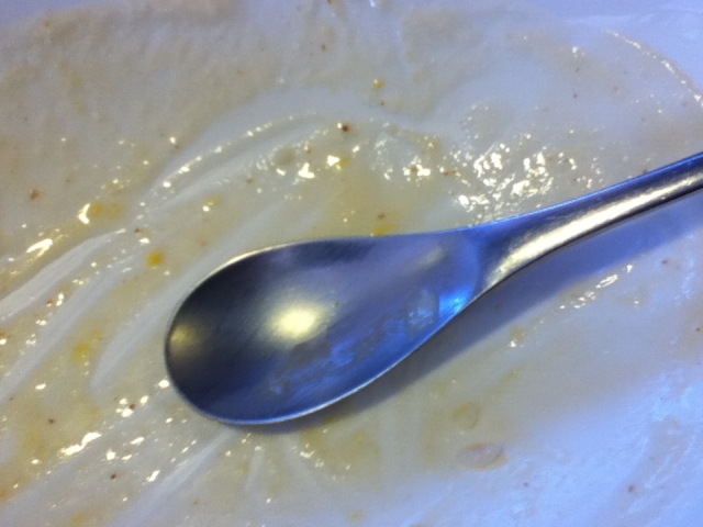 しかし、写真は全部食べてから気がついたので食後の皿だ。