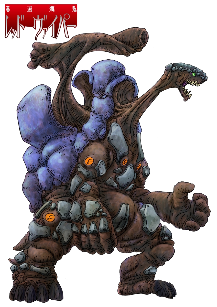 毒滅殲鬼レッドヴァイパー TURTLE CANNON 投稿者: murbo 投稿日: 2019/05/182022/06/18 カメ怪人のタートルキャノンはリクガメの合成人間。甲羅が開いて光弾を発射する。甲羅の素材はリキッドメタルと同じもの。他の怪人とは違いリキッドメタルが全身に点在する。リキッドメタルは守備型。エナジーバルブはオレンジ。遊園地のぬいぐるみのバイトをしていたレッドヴァイパーと対決。甲羅をバイオエッジで削ぎ落とされて絶命する。全長は4mほどあり、質量を活かした打撃技が得意。 シャープペン0.9mmのドローイングにprocreate(iOSアプリ)で着色。 関連記事: TURTLE CANNON KNUCKLE SNAPPING TURTLE カメ怪人
