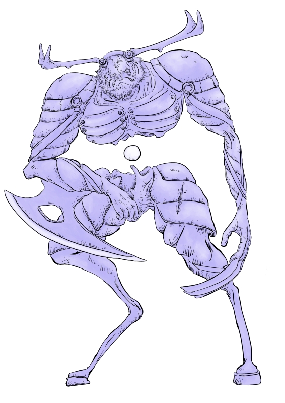 が合体した怪人。毎度おなじみ自分で描いたのに先に描いたものを見ずに雰囲気で描いたので細部が全く違う絵になりました。