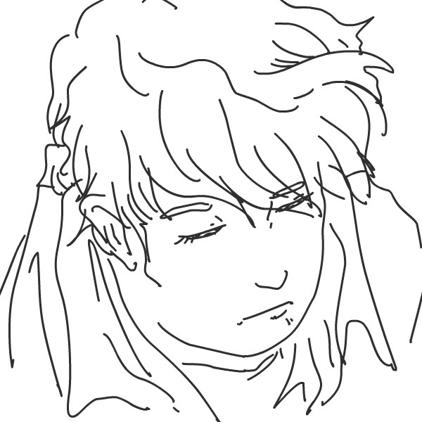 この絵を描くのに丸を描いて目や鼻と方向のガイドの前の十字を描いてなどとはやっていません。Animate(と言うアニメーションを作るソフト。静止画も当然のように描けます。)で新規ファイルを作って、白い画面にペンタブレットでいきなり描いています。(描く前の手慣らしにいちいち下書きすることはないです。君は準備運動の前に準備運動をするのか。)