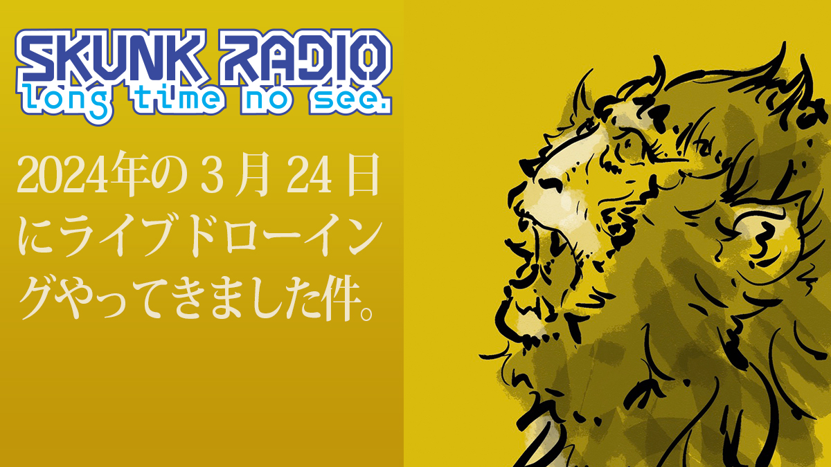 日記 2024年3月24日にライブドローイングやってきました件。 投稿者: murbo 投稿日: 2024/03/272024/03/27 2024年3月24日にライブドローイングやってきました件。240324 SKUNK RADIO long time no see. 関連記事: 展示の入れ替えと筆やボールペンなどの画材の件。 展覧会の感想はとてもありがたい件。 ライブドローイングを定例化したい件。