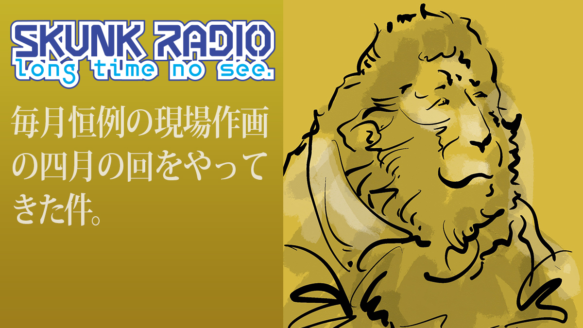 日記 毎月恒例の現場作画の四月の回をやってきた件。 投稿者: murbo 投稿日: 2024/04/282024/05/04 毎月恒例の現場作画の四月の回をやってきた件。240428 SKUNK RADIO long time no see. 関連記事: 看板描きの準備と貞照寺。 ライブのお手伝いをしました。221127 年末はホットミルクを飲むことになってしまっている。