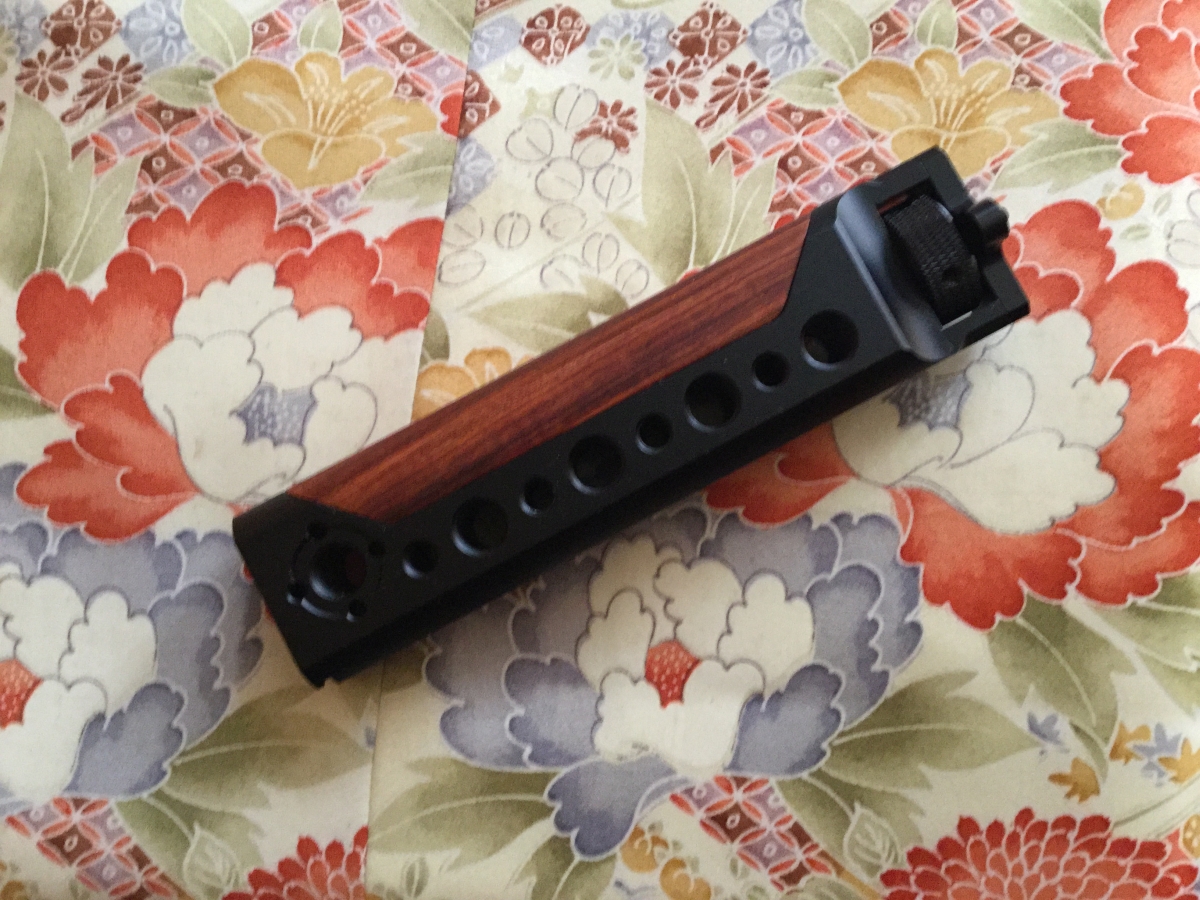 このグリップはメーカーであるZHIYUN-からはリリースされていなくてサードパーティが頼りなんだよ。いくつかあって価格と若干の仕様の違いを考慮しつつ、半分木製グリップにしました。こんなにもネジ穴要らないけどね。