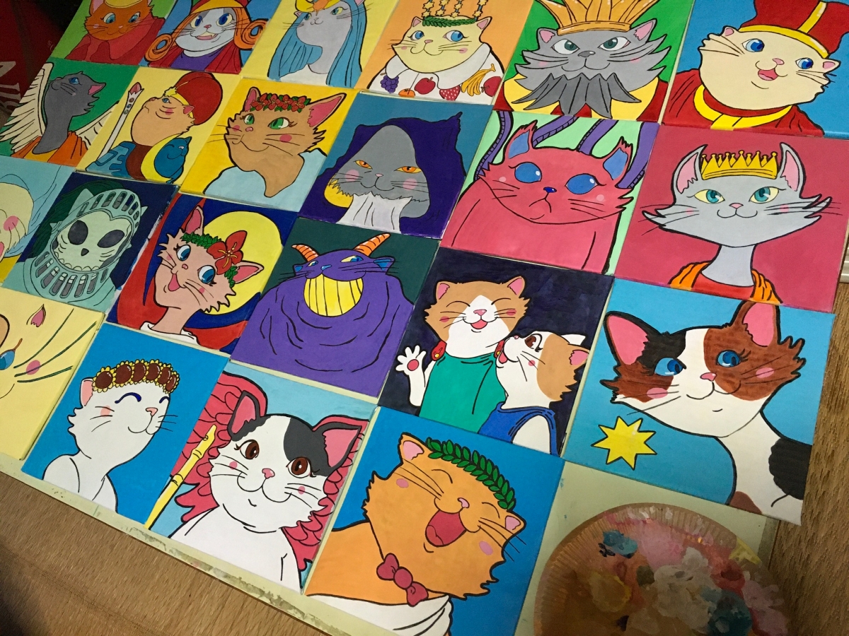 まあぼん まあぼん制作220526 投稿者: murbo 投稿日: 2022/05/282022/05/28 七月の四か所目の展覧会はタロットをモチーフにして描いた絵をいくつか展示予定です。その一つがこのシリーズ。アナログシングルレコードジャケットサイズで描いています。下絵は一気に描いたので絵柄の揺れは少ないものの、彩色は何度か中断しながら仕事をしたので揺れが大きいなあ。 関連記事: また保存用の箱に描く。 まあぼん制作220610 タロットイラスト集を作りました。