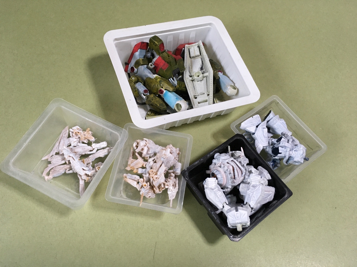 他のことをやっているので一旦それぞれのパーツごとに入れ物に分ける。ゴマ豆腐とかたまご豆腐の容器がとても役立っています。