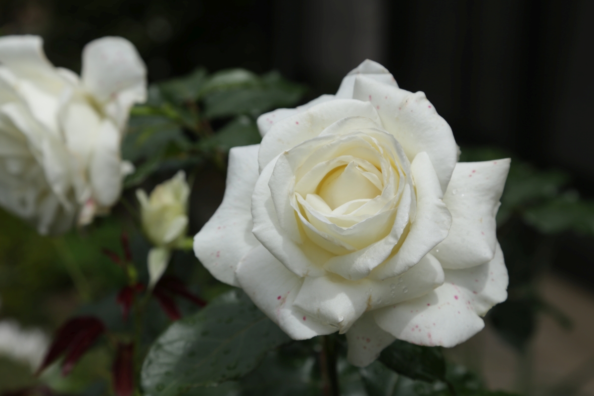 我社の庭の薔薇。三年くらい前から白いバラがきれいに開くようになった。