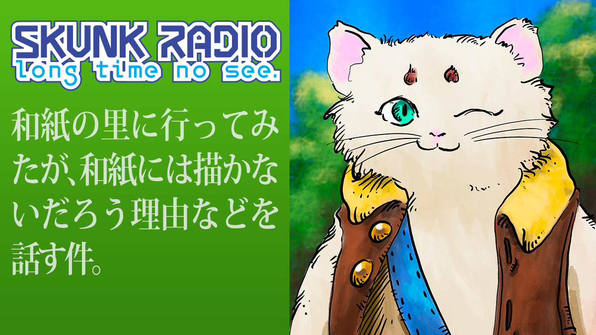 日記 和紙には描かないだろう理由などを話す件。 投稿者: murbo 投稿日: 2023/12/282024/01/02 和紙の里に行ってみたが和紙には描かないだろう理由などを話す件。231222 SKUNK RADIO long time no see. 関連記事: オウンドメディアとフィギュア製作、など。 シン仮面ライダーを見たよ。 投票しました。