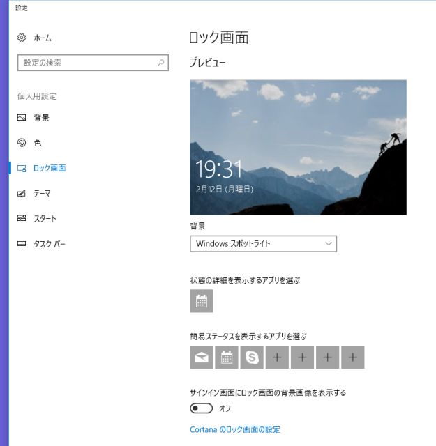 『サインイン画面にロック画面の背景画像を表示する』をオフにしたら楽勝じゃないか!とやってみたら単に画像は表示されないだけでロック画面自体は存在するのです。何を表示しているかといえば、背景画像に設定した塗りつぶされた色です。これを通り抜けるワンアクションが気に入らないんですけどね。