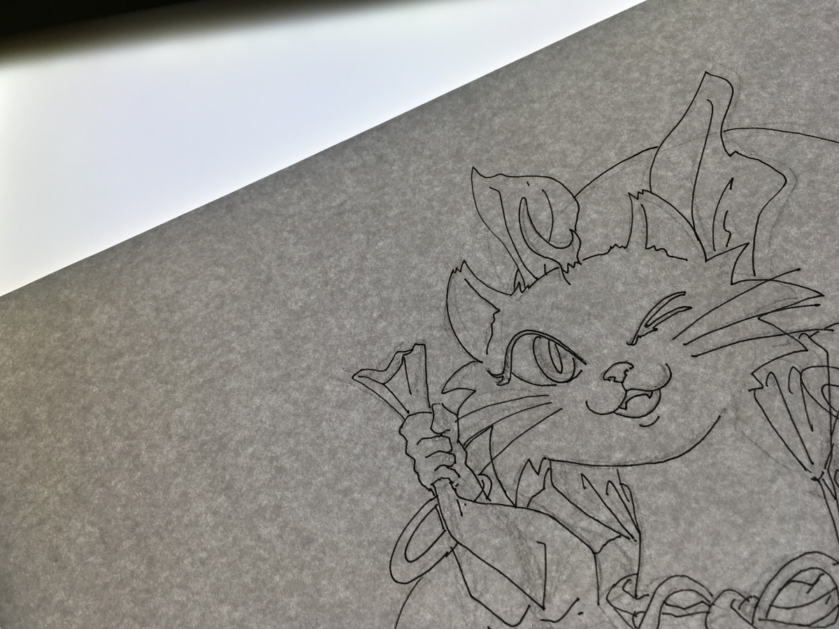 まあぼん 展覧会用に制作中。 投稿者: murbo 投稿日: 2022/02/252022/06/06 タロットとは別の展覧用の作り物。 載せてる絵は別のもので、事情があってライトテーブルを久しぶりに起動。消しゴムがかけられない紙なので別の紙に下書きして作画。下書きなしで描けなくもないが、不測の事態に対応したい。 関連記事: まあぼん風神雷神図の制作中。 麒麟(大)制作211207 麒麟(大)制作211229