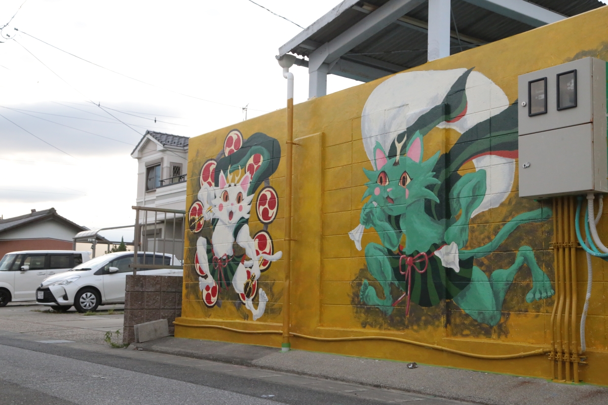 まあぼん 八月七日はまあぼん風神雷神図の制作六日目。 投稿者: murbo 投稿日: 2021/08/142021/08/23 かなり遅れてしまった制作記。それなりに完成に近づいています。しかし、連日のひどい雨で制作が滞っています。 Tweets by muarbon 関連記事: まあぼん風神雷神図の壁画制作開始。 まあぼん風神雷神図、制作二日目。 まあぼん風神雷神図の制作三日目。