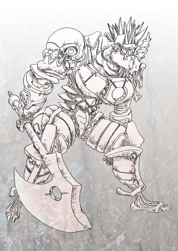 トマホークはうねうねした形に描きがちだよなと思って、どのあたりを使って攻撃できるか考えてシンプルにした。