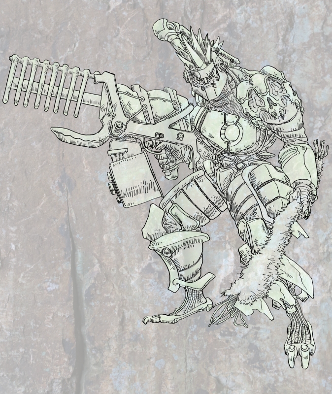 マシンガンが殊の外大きくなってしまい、絵が小さくなってしまった。左手に持っているエビフライみたいなものは怪人マンドリルの腕。