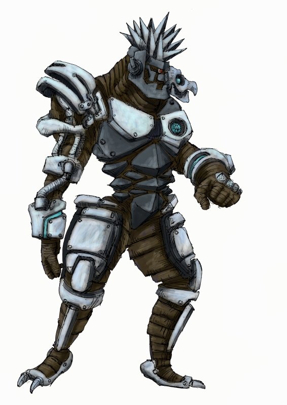 XIGMAD XIGMAD greif joint 投稿者: murbo 投稿日: 2017/04/282017/05/24 右腕などが変形したり色が変わったりしてバリエーションが四つあることにしていたらしい。自分で考えているのにらしいというのはすっかり忘れていたのだ。左腕の丸いところにキューブが浮遊していてそれを回してフォームチェンジすることには今考えた。左肩の顔は鷲のようなものの頭蓋骨。雷を武器にして全体的には防御力が高いという事にしてあった。 赤ボールペンで下書きして、その上にボールペンで描いているが、考えながら描いているのでまとまっていない。怪人はペンで描いていたのも思いだしたのでこれもペンが描こう。 Readers who viewed this page, also viewed:XIGMAD greif joint valkoinen kunaiXIGMAD greif joint カラー版 関連記事: XIGMAD greif joint valkoinen kunai XIGMAD greif joint alba knuckle machine gun XIGMAD greif joint カラー版