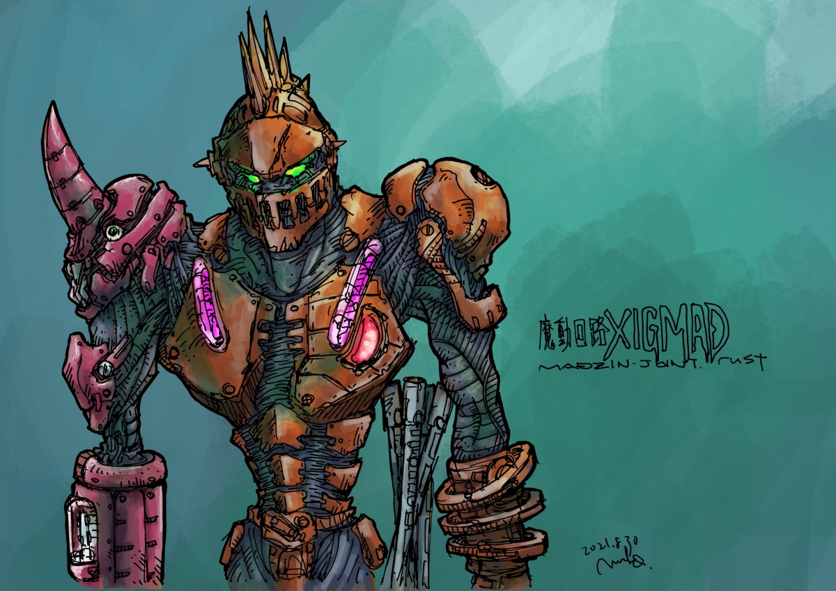 XIGMAD XIGMAD madzinjoint rust 投稿者: murbo 投稿日: 2021/09/022022/01/08 考えるだけだったのでとりあえず描いてみた。錆をイメージする色を茶色以外で何とかならんだろうかとか。 関連記事: XIGMAD madzinjoint rust 220107 XIGMAD RUST joint 全身 220921 XIGMAD madzinjoint rust 221226